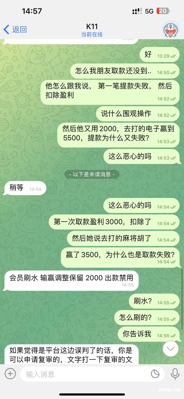 前两天在米兰体育开了代理线, 喊身边朋友去玩, 今天朋友首存2000,赢了3500然后进行提款, 被客服告知违规操作 违规套利 违规下注。我就搞不懂了 pg麻将胡了 怎么个违规套利。违规下注法, 真的是天大的笑话, 电子有违规下注这么一说。 希望大家可以好好的审视一下自己做代理的平台,别到时候辛苦一个月佣金拿不到手, 我这几千块钱都是小钱, 大家好好审视一下自己合作的平台, 这种垃圾平台真的没有必要在合作下去, 新用户 存款2000,赢3500都不给出款。 这种平台真的是格局太小。难道只能输,不能赢吗, 我希望大家还在玩的多多注意。